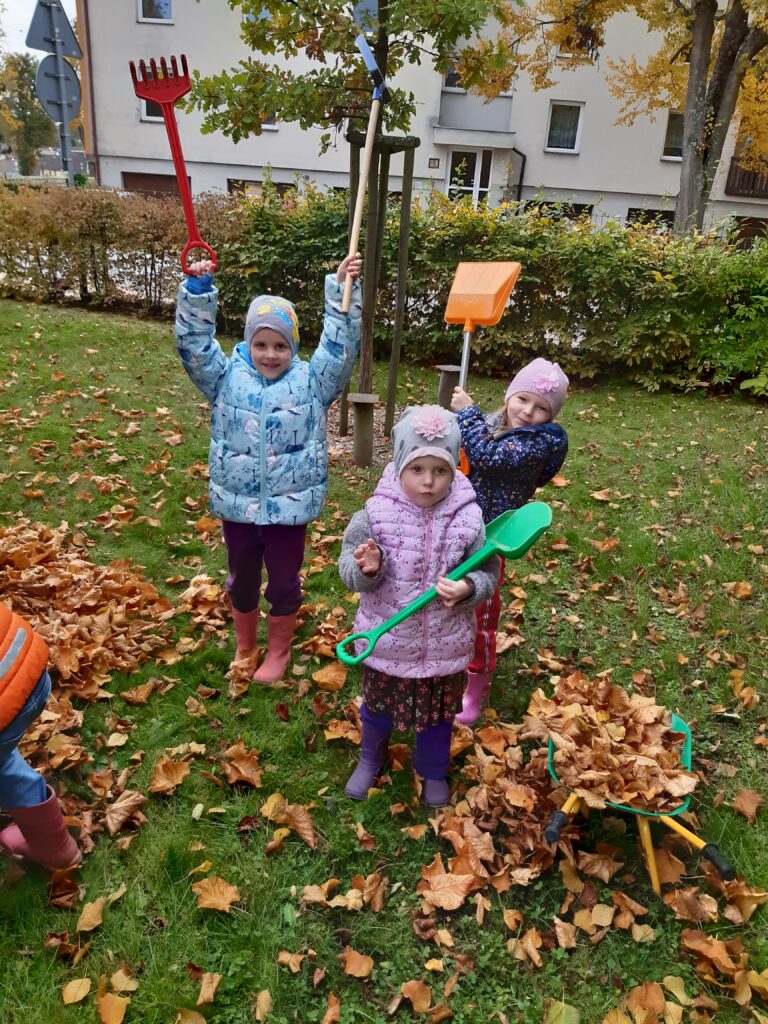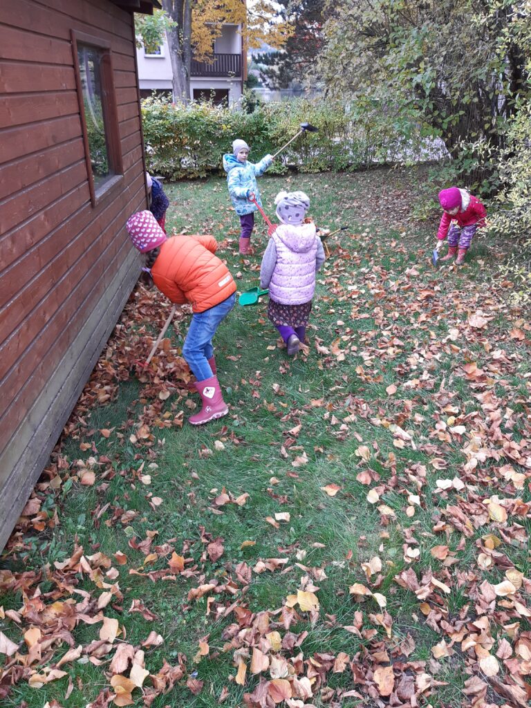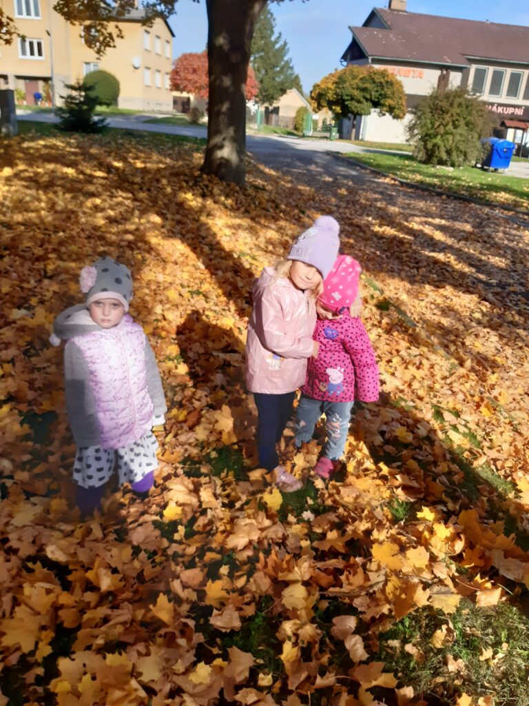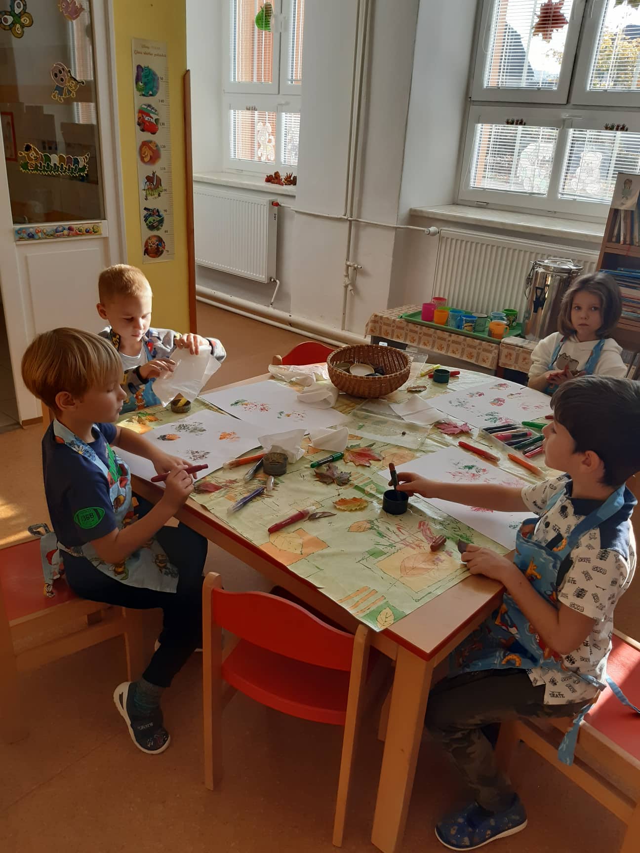 Podzim nám nabízí pestrobarevné činnosti ve školce i venku. Procházíme postupně různými podzimními tématy – o jablíčkách, dracích, dešťových kapičkách. Příznivé počasí nám dovoluje podzim vnímat při procházkách i na zahrádce.