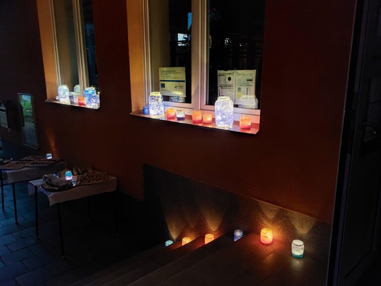 Před sedmnáctou hodinou se sešly děti ze školky se svými učitelkami, netrpělivě čekaly na své vystoupení. Množství přihlížejících především z řad rodičů vyslechlo i krátké "povídaní|"jak paní ředitelky, tak p. Hronové. Když se dětem patřičně ulevilo - měly písničky za sebou, vydal se průvod na cestu ke škole. Byl to úžasný pohled na všechna ta světýlka. U vchodu do školy byl cíl - sladký i slaný, který připravili rodiče a prarodiče. Příjemné chvíle a společný čas...to byla největší odměna pro ty, kteří se na přípravě podíleli.