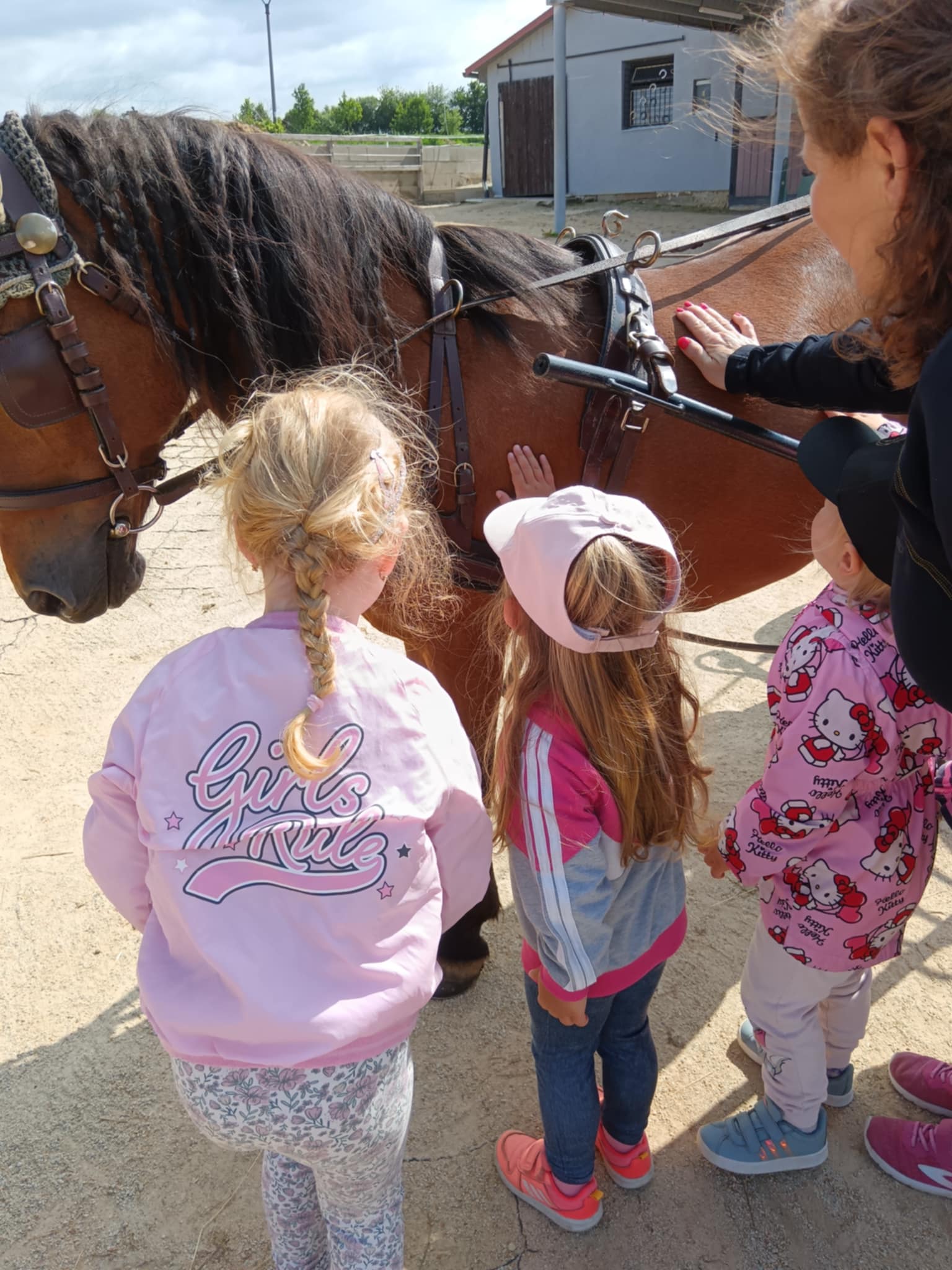 Na výlet mateřské školy jsme museli tentokrát více cestovat. Začali jsme jízdou linkovým autobusem a pokračovali vláčkem do Malého Pěčína. V místním Jockey Clubu nás čekalo mnoho domácích zvířátek, která si děti mohly pohladit i nakrmit. Největší nadšení dětí přinesla jízda se zapřaženým koníkem po blízkém okolí. Došlo i na opékání buřtíků, hry a povídání o životě zvířátek. Zpátky jsme opět cestovali vláčkem do Dačic a po té ještě autobusem do Českého Rudolce. Z výletu si děti odnášely mnoho zážitků, spokojenost a také unavené nohy. „Sláva nazdar výletu, nezmokli jsme, už jsme tu“.
