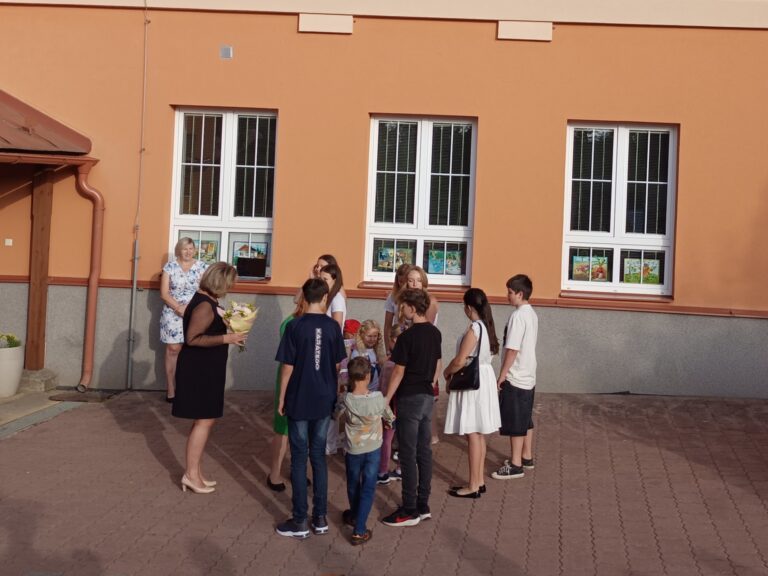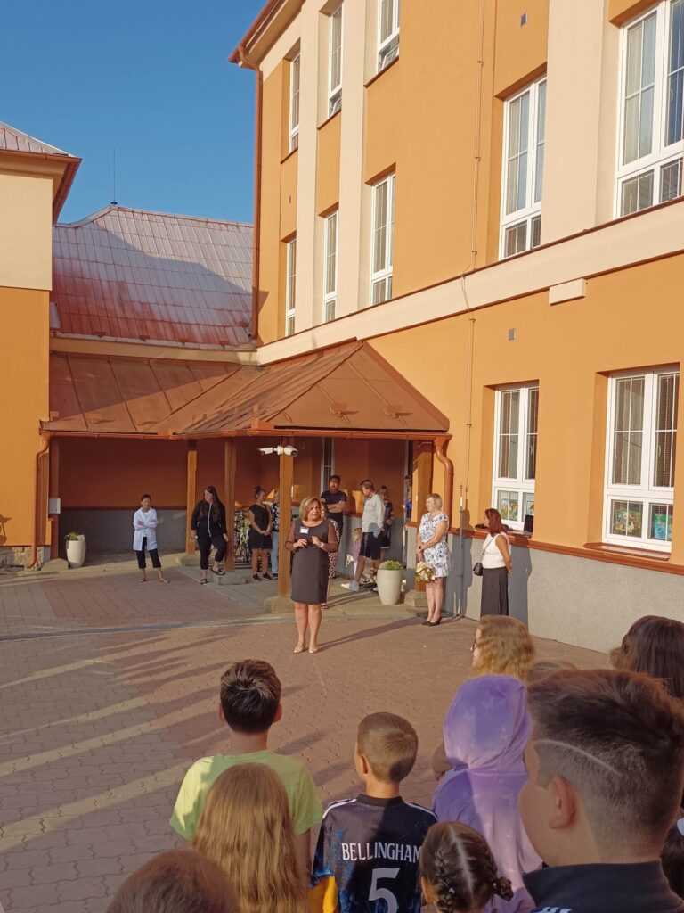 Prázdniny utekly jako voda a 1. září jsme se opět všichni sešli na nádvoří školy. Nová paní ředitelka Eva Macků přivítala všechny žáky, jejich rodiče a prarodiče, zaměstnance školy i milé hosty. Následně předala slovo paní starostce Petře Malé a předsedkyni školské rady Radce Hronové. Po krátkých projevech doprovodili naši osmáci prvňáčky do jejich třídy. Tam jim paní starostka předala drobné dárky jako milou vzpomínku na tento slavnostní den.