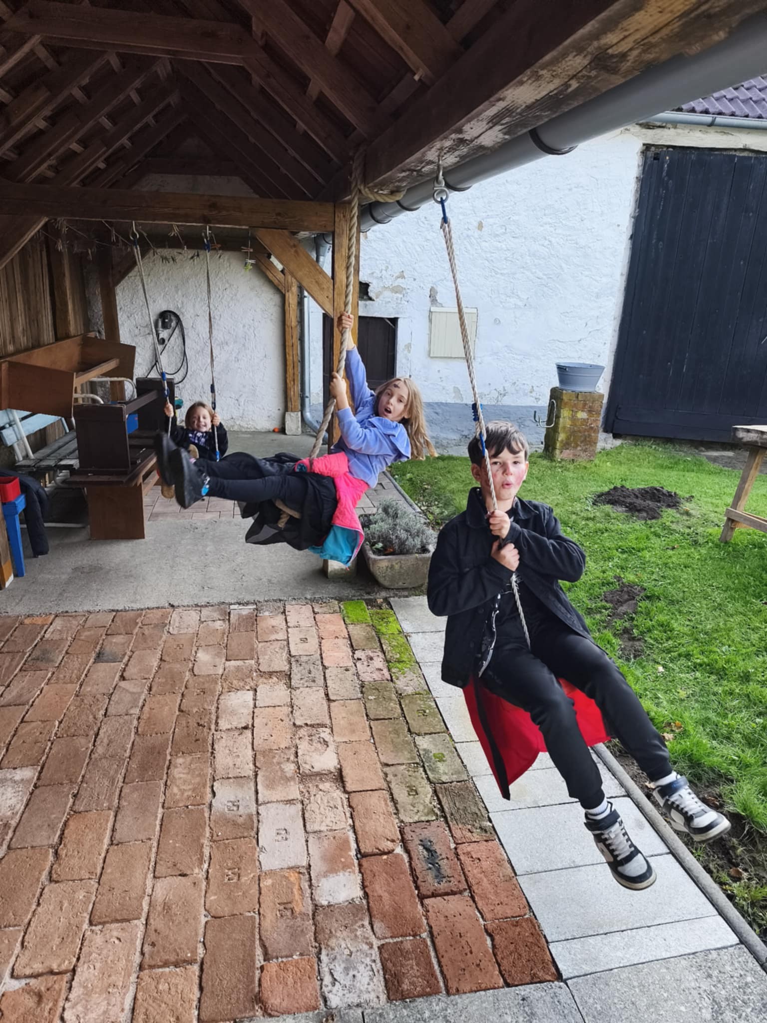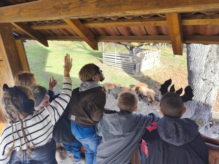 Ve mlýně bylo pro všechny připravené pohoštění, které nám připravila děvčata z 5. třídy – patří jim velké poděkování! Děti zde také měly vyžití v podobě houpaček, klouzačky, trampolíny a společného krmení koz.