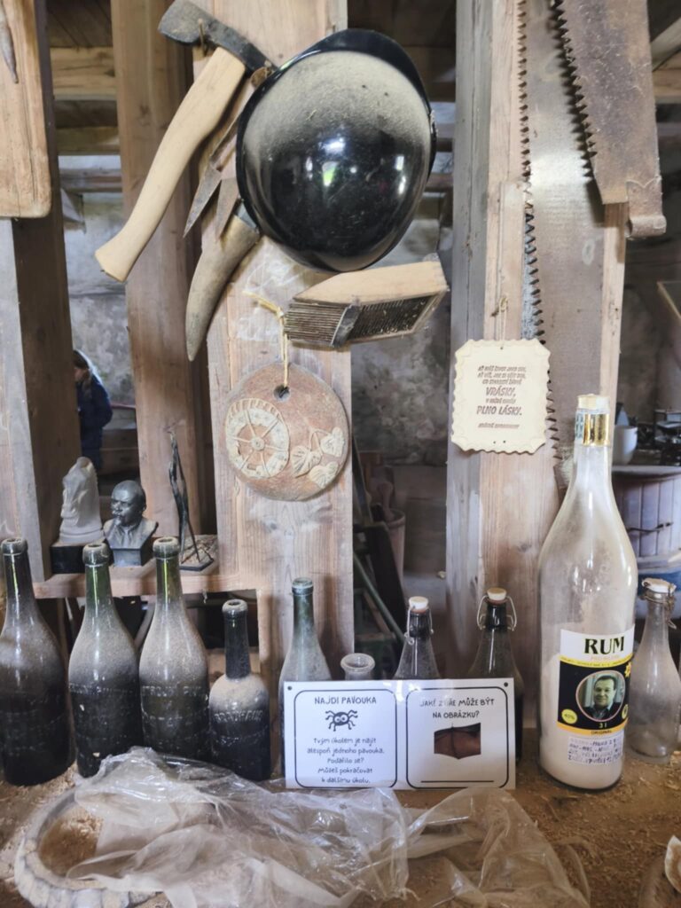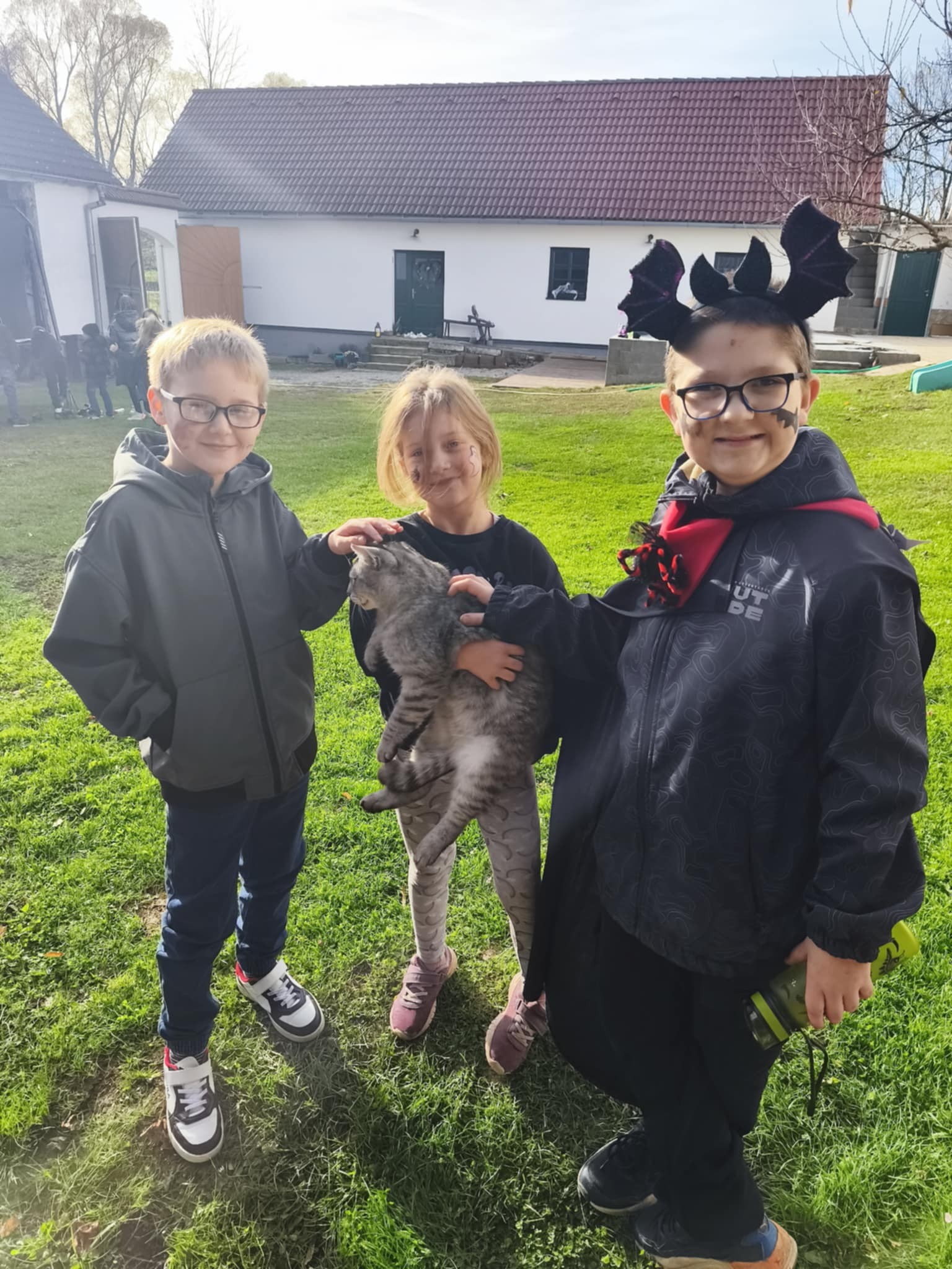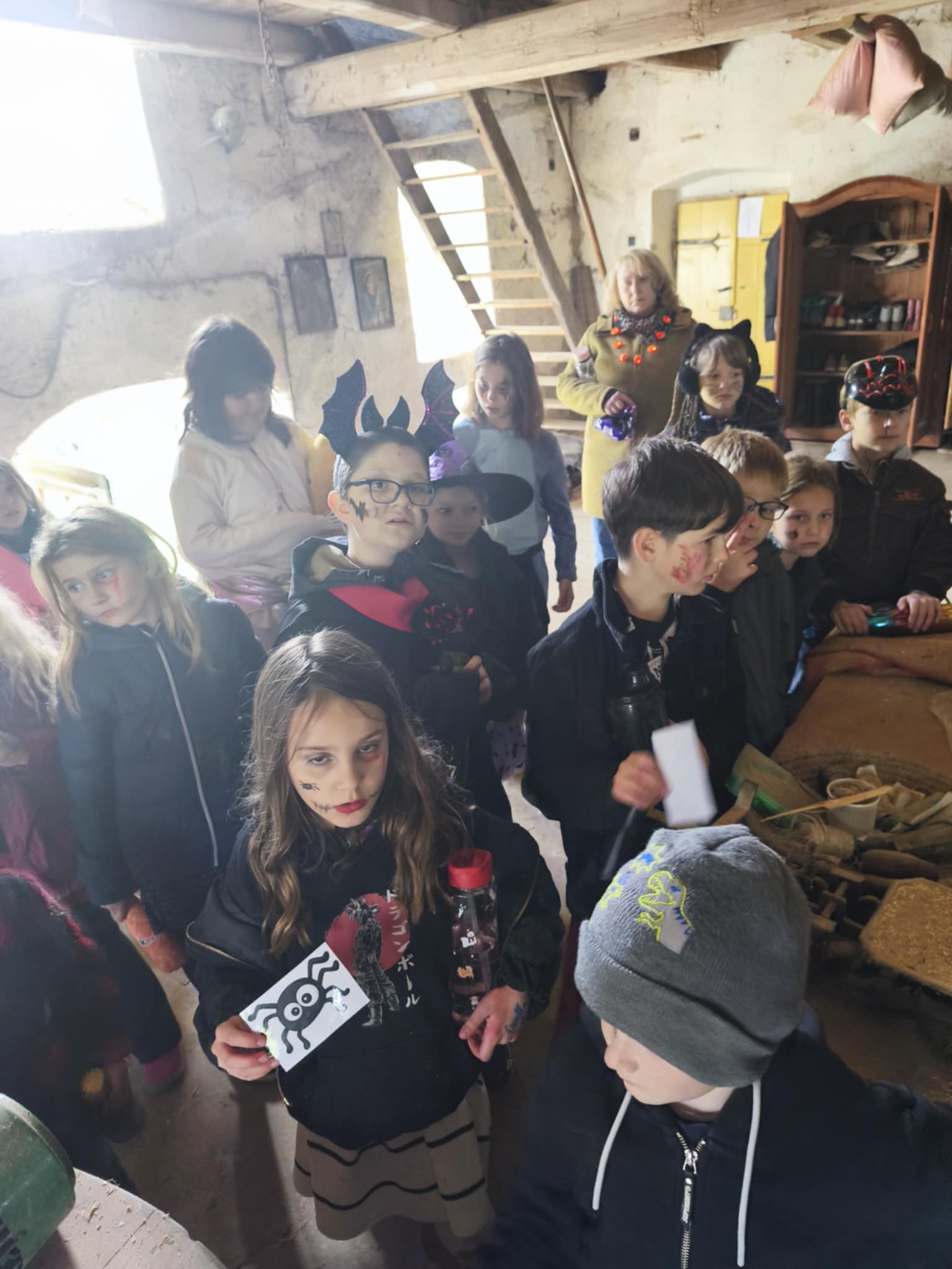 Trasa pokračovala strašidelně vyzdobenou starou mlýnicí, kde na děti čekaly další úkoly. Všechny je s nadšením plnily a užívaly si tajuplnou atmosféru. Za mlýnem u rybníka a na louce našly děti další kartičky s úkoly. Odtud jsme se pak vraceli ke kapličce a stejnou cestou zpět do školy.