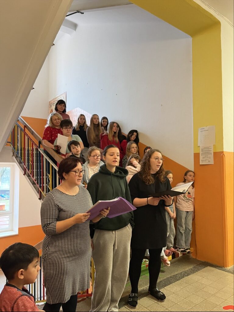 Poslední školní den se celou školou rozezněly vánoční koledy. O třetí vyučovací hodině se všichni žáci, včetně nejmenších budoucích školáčků z mateřské školy, shromáždili na chodbě a poslouchali vystoupení svých spolužáků z pěveckého sboru, kteří na schodech zazpívali vánoční koledy.
